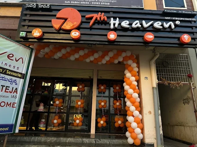 Located at D no 40/337-A, Opposite National Insurance, Gandhi Nagar, Kurnool, Andhra Pradesh 518001, 7th Heaven Bakery & Cafe is a prominent dessert destination in Kurnool known for blending artistry with fresh flavors. Situated in a lively, well-trafficked area, the café attracts locals, families, and visitors looking for indulgent baked treats and custom celebration orders.